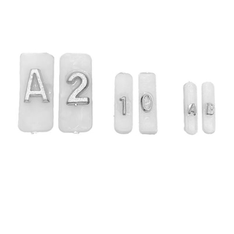 Pack de 100Face plate.Dimensions : 9x6x2 mm 26 lettres alphabet + 10 chiffres